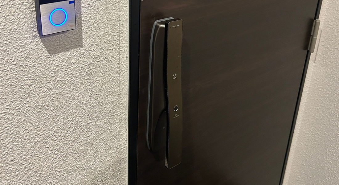 顔認証や指紋認証に対応したスマートロックにより、鍵を取り出す必要がなくなり、スムーズな入室を実現。